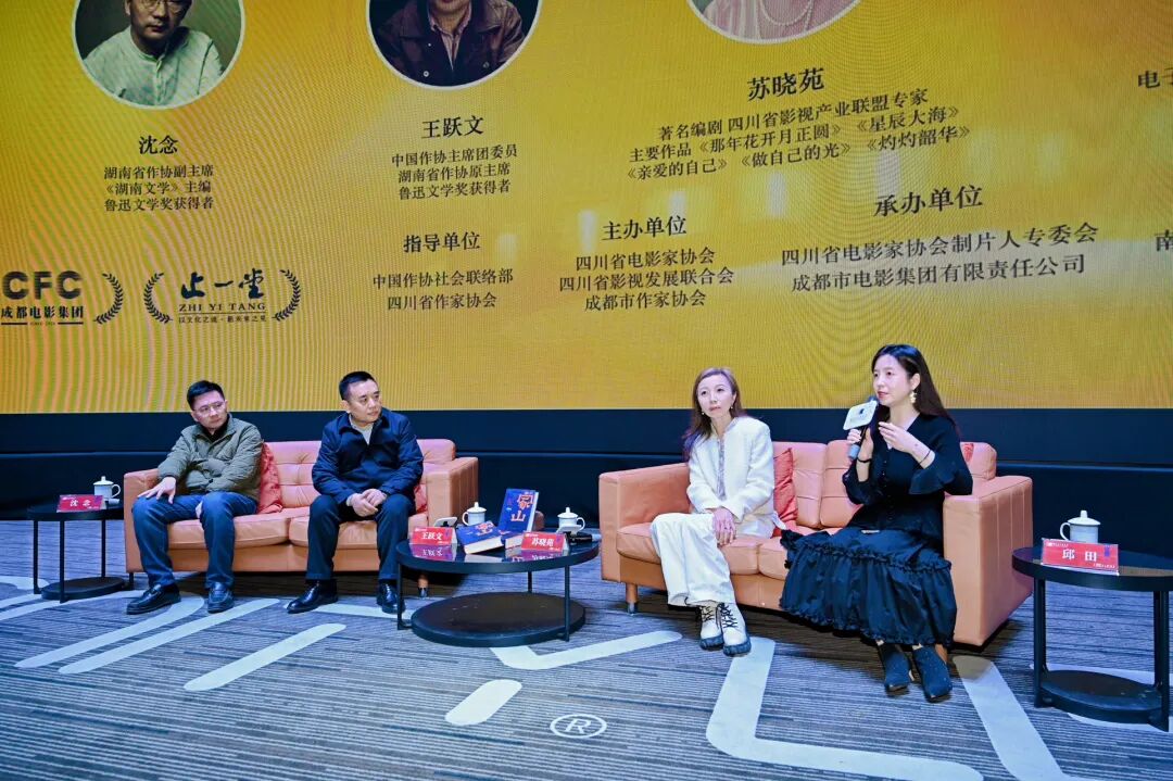 12月29日19:00,“跟著‘大家’看電影”項目第三期活動在成都新明電影院5號廳如期舉行,豪華的嘉賓陣容吸引了約200名觀眾參與這場文學(xué)與影視融合的文化盛宴。本次活動由中國作協(xié)主席團委員、湖南省作協(xié)原主席、魯迅文學(xué)獎得主王躍文擔任主講嘉賓。同樣是魯迅文學(xué)獎得主,湖南省作協(xié)副主席、《湖南文學(xué)》主編沈念;擁有《那年花開月正圓》《星辰大?!贰蹲鲎约旱墓狻贰蹲谱粕厝A》等作品的著名編劇蘇曉苑擔任對談嘉賓。青年評論家、成都電子科技大學(xué)文學(xué)院副教授、文學(xué)博士邱田擔任學(xué)術(shù)主持。
